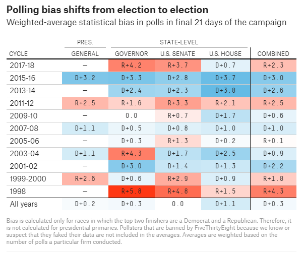 There is no question in 2016 that the polls were leaning toward Democrats. Interesting to note this is not always the case, Republicans had polling bias in the 2012 and 2000 presidential elections.